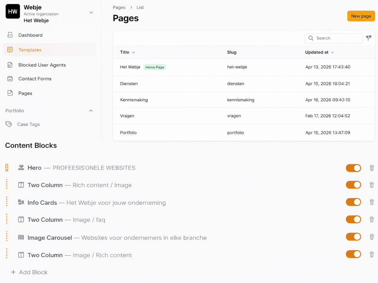 Ons eigen systeem is juist simpel en snel: je website werkt soepel, is goed beveiligd en helemaal afgestemd op jouw bedrijf. En het beste? Je kunt alles zelf makkelijk aanpassen, ook zonder technische kennis.